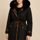 Capuche élégante à fausse fourrure : un détail raffiné qui allie douceur et style.